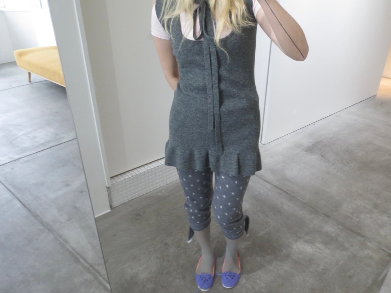 color #gray model 155cm ウエストはゴムが入っているため95センチまで伸びます。 後ろ右側ポケット付きです。