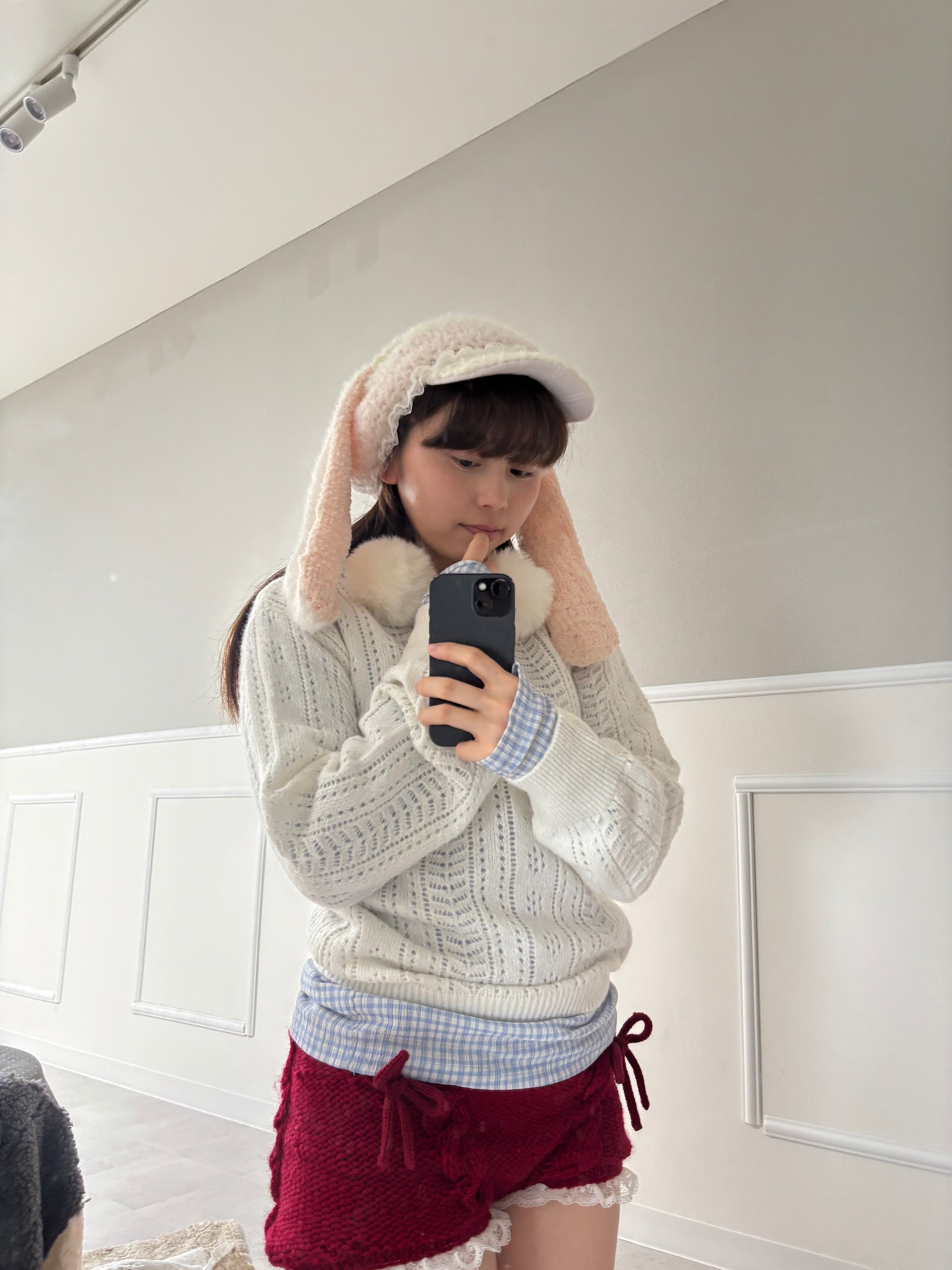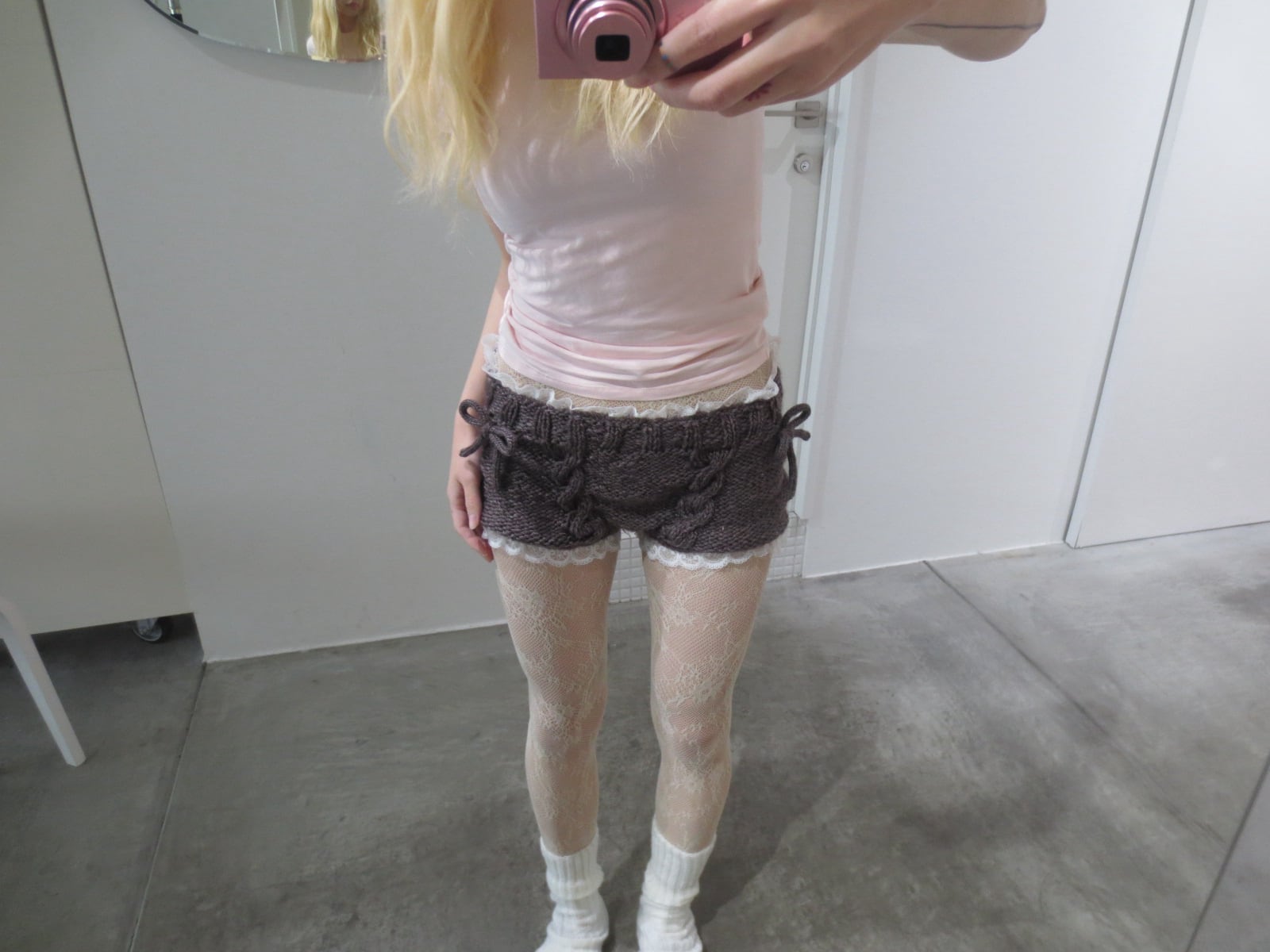 腰にリボンがついたデザインのニットパンツです。 **ウエスト 67** **高さ 21** ニットなので伸び縮みします。