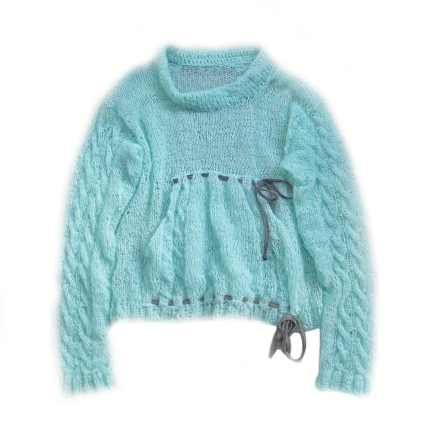 手編みで制作されたデザインニットです。 size free *着丈60 *袖丈63 *身幅46