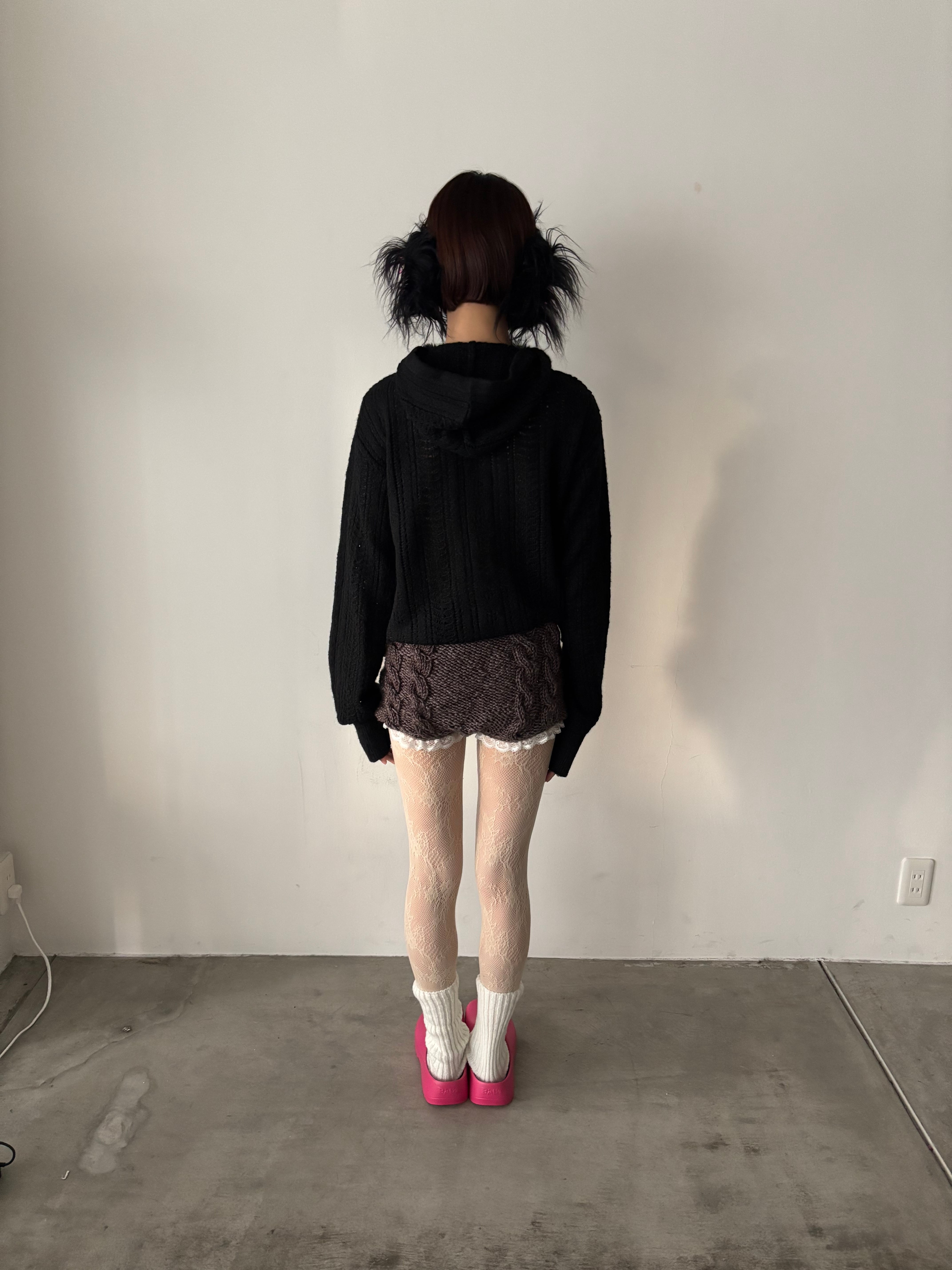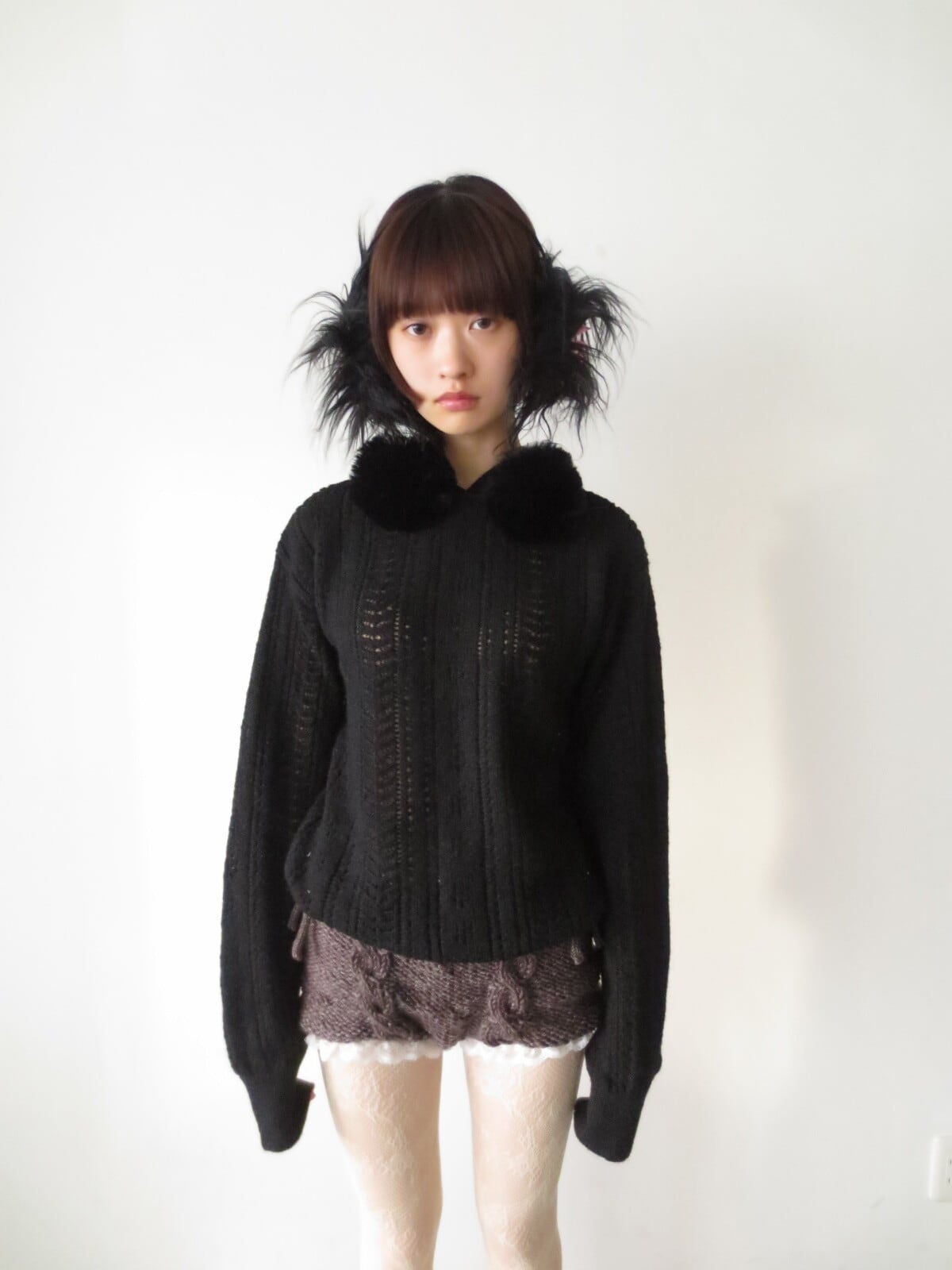 アウターを着ても首元から見えるポンポンが特徴的なデザインになっております。